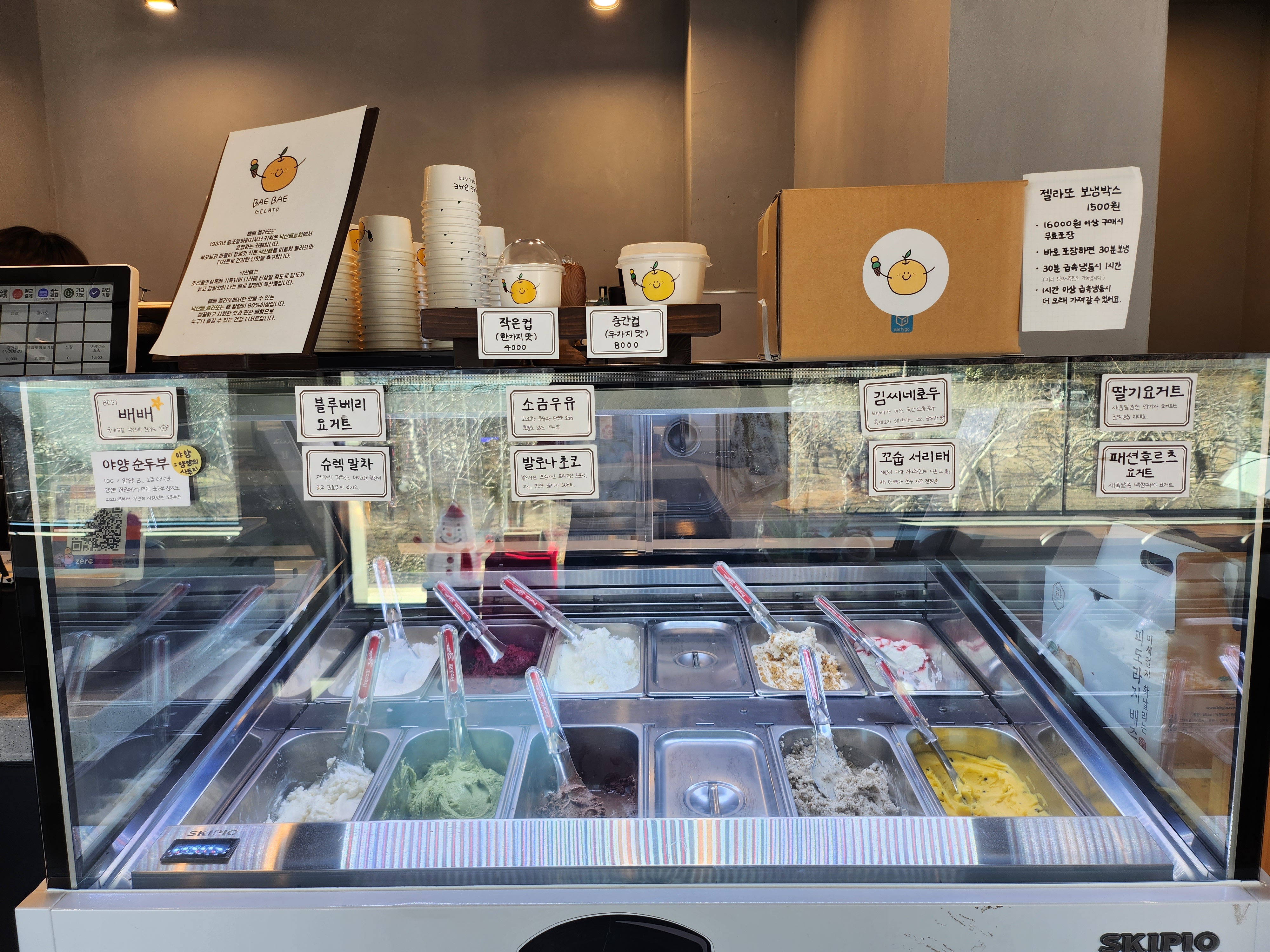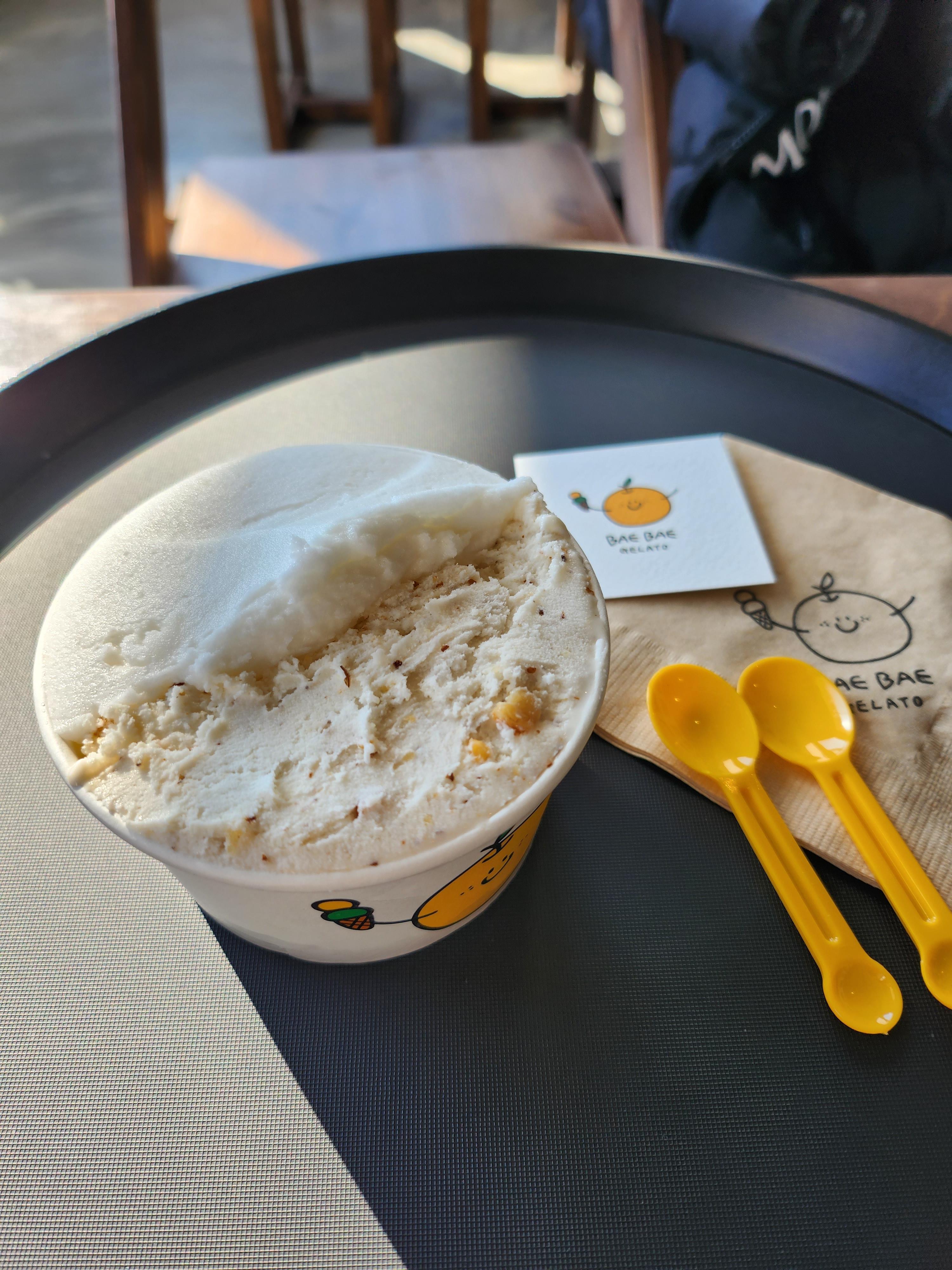 먹고 싶은 건 많았지만 다 먹을 수 없는게 아쉽. 시그니처 배 젤라또와 직접 농사지으신다는 호두 젤라또로 선택. 썰어놓은 배를 먹는듯한 배 젤라또와 꼬소한 호두까지 나의 선택, 좋았다.