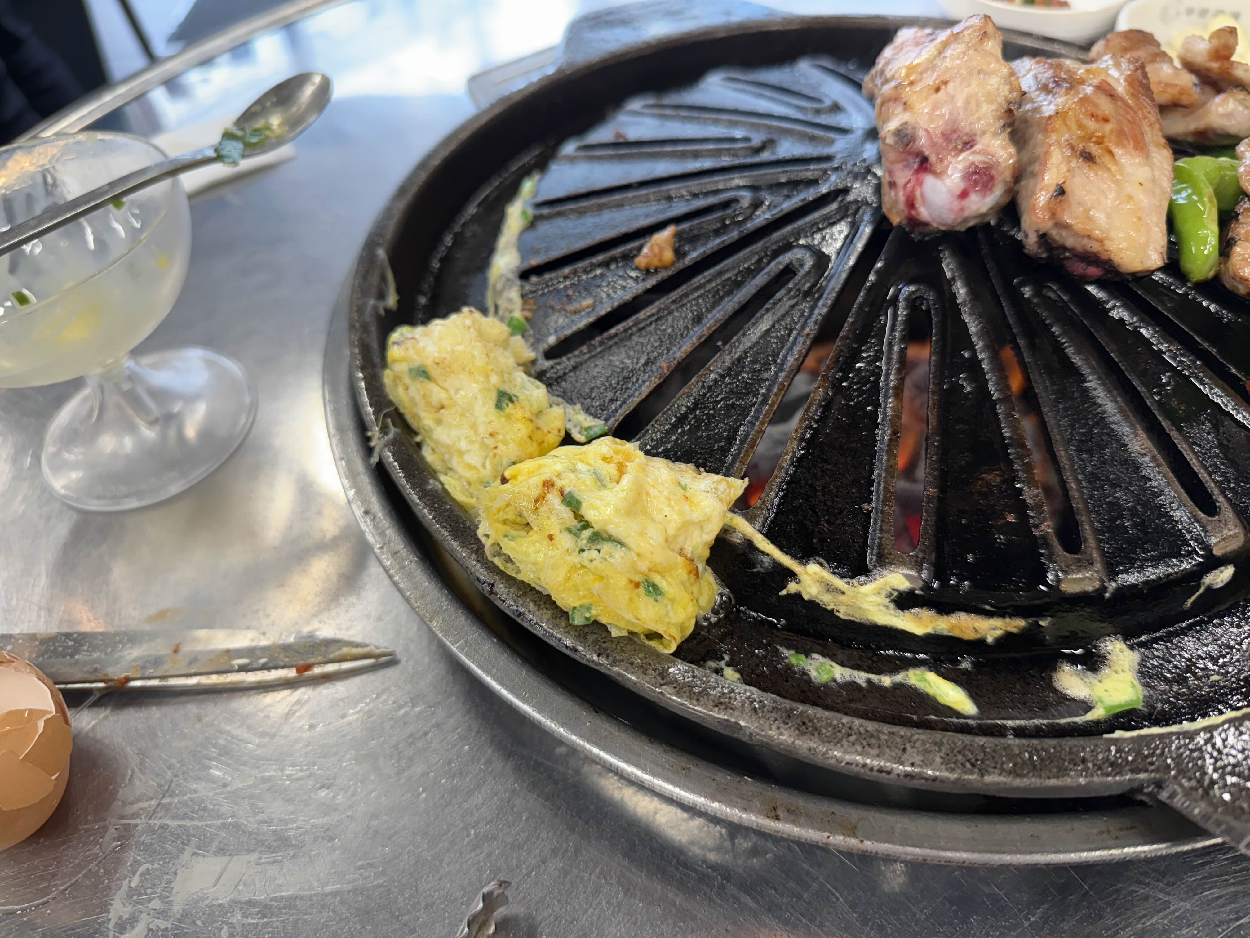 메뉴는 돼지갈비 단일메뉴이고, 꽈리고추 3~4개와 달걀말이(달걀 1개)가 기본으로 제공되니, 먹어보고 추가하는 것도 좋을 듯…